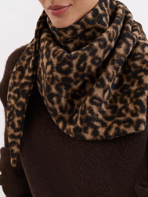 This women's trendy scarf is inspired by vintage fur accessories, updated with this modern, city-ready design. Its silky texture will keep you cosy while highlighting the nape of the neck and décolletage. Fastened with buttons at either end, this dressy scarf features a stylish leopard print. Be seduced by the retro style of this luxe scarf, pairing it with a wool jacket and high waisted fitted trousers.