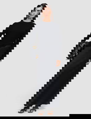 Long silk skirt with motif and buttons Description This long silk skirt features one of this season's defining prints: small multicolor flowers inspired by '70s fashion. It's high-waisted and slightly flared at the bottom, with an elegant see-through effect. Against the deep black background, the contrasting lavender purple motif all over brightens it up. Bring out the charm of this sophisticated skirt by wearing it with a basic white cotton T-shirt, a denim jacket and sneakers.