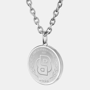 Providing the perfect finishing touch for your look, this silver necklace for men is one of our new collection's defining pieces. It has a thin metal chain and the clasp makes it easy to fasten at the back of your neck. The two skull-shaped pendants—which differ in size for a contrasting effect—enhance the piece. Fly the flag for our brand by wearing this necklace over a T-shirt, with a patterned shirt and jeans.