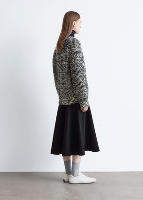 This long pleated skirt with its refined flared shape is an absolute essential from our autumnal capsule. Made of this floaty see-through fabric, it features an elastic waist and a mini printed floral motif all the way down. Matching lace stripes are added at the bottom to create a subtly sheer effect. For a simple yet modern outfit, team this black skirt with an ecru silk shirt and a pair of leather cowboy boots.