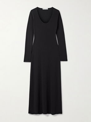To capture the sensual allure of an English boudoir, this long black dress is directly inspired by lingerie. Made from light satiny fabric, it has a very flattering empire waist with small gathers beneath the bust. It features thin shoulder straps at the top and the romantic skirt is pleated all over. For a bold look, team this sophisticated dress with a cropped tweed jacket and a pair of heels.