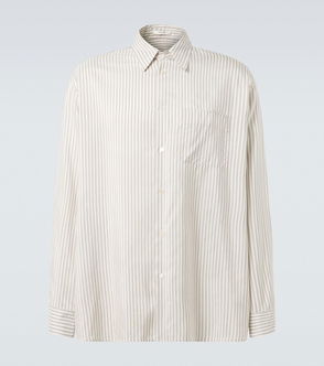 This striped silk shirt provides sumptuous elegance throughout the day and into the evening. Made from high-quality material with a satin-like sheen, it retains the classic features of the formal garment, including button fastening and a classic collar. The thin contrasting stripes all the way down give it than bold graphic edge. Break away from your standard routine by wearing this men's shirt with black trousers, a suit jacket and Oxford shoes.