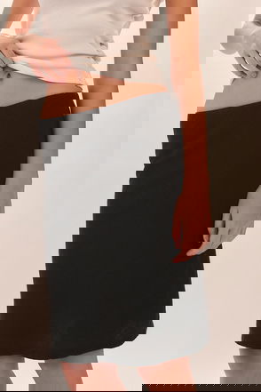 Modern and easy to wear, this black wool skirt is distinctly minimalist in style. Cut just below the knee, it's made from a stretchy, ribbed knit material. Thanks to the tone-on-tone elastic waistband and invisible zipper at the side, it fits perfectly when worn. For a twist, team this skirt with its matching high-neck sweater, a leather biker jacket and heeled sandals.