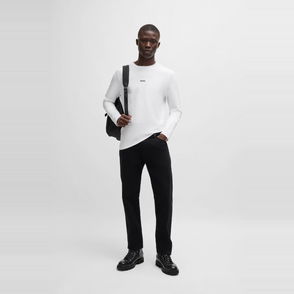 This black cotton T-shirt perfectly encapsulates this season’s streetwear trend, revisited in the spirit of our brand. Utterly modern, it’s loose-fitting, and features drop sleeves and a crew neck with ribbed edging. The dark background is brightened up by multiple logos printed in white letters. Opt for a simple yet effective outfit by wearing this casual T-shirt with fitted sports bottoms, a zipped jacket and trainers.