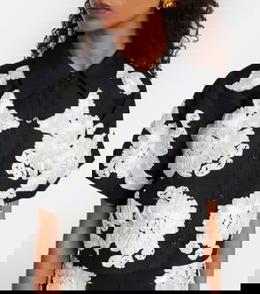 This black shirt with floral print is a romantic addition from our new collection. The simplistic shape helps to accentuate its three quarter-length sleeves and rural printed motif. Ideal for giving your looks a touch of refinement, this black silk and viscose shirt blends perfectly into your outfit underneath a black biker jacket.