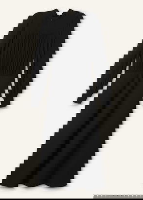 With its roomy silhouette and bohemian details, this black dress with lace will take you right back to the 1970s. The flowing crepe fabric is delicately pleated around the waist and cuffs, and there's a discreet drawstring at the neck. The see-through lace trims all over this piece further emphasise its light, floaty feel. Put casual style front and centre by teaming this embroidered dress with a leather jacket and sandals.