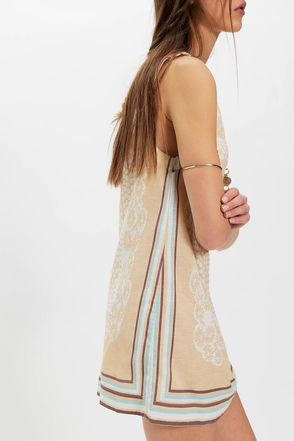 With this short-sleeved printed dress, you'll look trendy in no time at all. The universally flattering silhouette stands out thanks to the puffed sleeves, V-neck and flared frills at the bottom. The small flowers printed all over provide a touch of color against the pink fabric. You can flaunt this short dress with a black leather belt, golden jewelry and a pair of burgundy Oxford shoes.