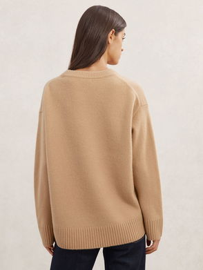This long turtleneck sweater is a new essential in our Winter collection, with its soft material in camel tones. With a sportswear feel, this piece comes in a loose fit with long sleeves and a roll neck collar. It has a touch of femininity with two deep side splits, subtly revealing the next layer of your outfit. Super on-trend this season, this formal sweater pairs well with silk joggers or wool trousers.