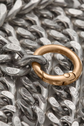 This silver trouser chain is one of this season’s boldest accessories. Perfect for giving urban trousers that touch of originality, it consists of thin links to maintain subtlety. The clip system allows you to attach and detach it with ease, however you see fit. For that ‘90s grunge style, attach this chain to a pair of black jeans teamed with a hoodie and trendy trainers.
