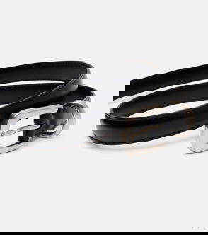 This skinny black leather belt is a trendy, versatile accessory that will give your roomy outfits better structure. Thanks to the thin shape and plain colour that makes it easy to pair, it’s stylishly discreet. We’ve enhanced it with sophisticated details, including small eyelets all the way along and a slightly aged-effect, silver metal buckle. Perfect for everyday outfits, this belt works just as well around a printed dress as it does with an oversized suit jacket.