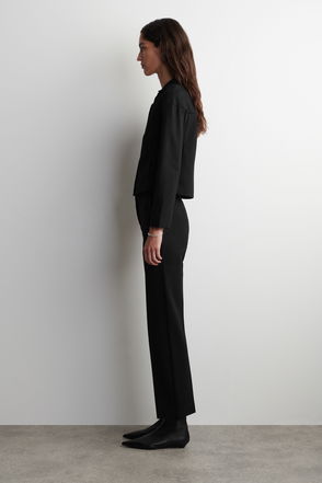 Give your outfits an iconic, masculine-style touch with these straight-cut grey polyester trousers. The straight fit caresses your figure perfectly and the leather and velvet stripes down the sides streamline your shape. Made from pleasant fabric embellished with a British houndstooth motif, these straight-cut trousers will wow the crowd with their chic charm. Team them with pointed-toe, leather ankle boots by The Kooples for an outfit full of that Brit-rock style held so dear by our brand.