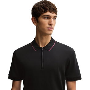 This striped black shirt is one of the defining creations from our summer collection thanks to its original 80s-style detailing. One of the main fabrics used for this collection, the Japanese cotton is embellished with narrow golden stripes against a black background. To set it apart from other classic models, this piece features two patch pockets and zip fastening running all the way up to the collar. Opt for a bold outfit by teaming this printed shirt with black velvet trousers and derbies.