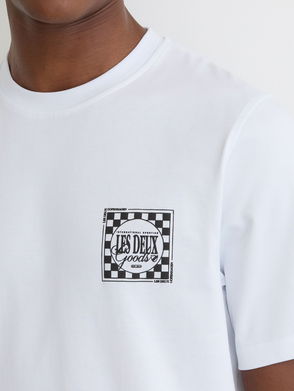 Flying the flag for our brand, this white T-shirt offers bold style when worn. It echoes this season's sportswear trend with its loose fit, crew neck with ribbed edge and short sleeves. The raised, retro-style black logo on the chest makes it stand out in a subtle way. Simple yet effective, this T-shirt works just as well with urban trousers as it does with joggers or coloured chinos.