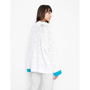 This velvet kimono is adorned with our new Winter collection’s exclusive leopard print. In a beautiful light green, it features a long cut inspired by traditional Japanese pieces. The Kooples has given this kimono a style upgrade with little pearls expertly embroidered onto the devoré velvet. Choose this on-trend kimono for the Autumn/Winter season, paired with a cashmere sweater, wrap skirt and ankle boots.