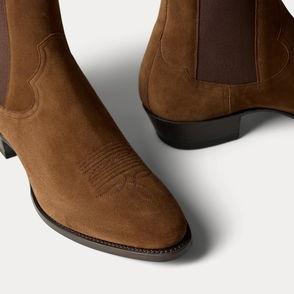 This season, The Kooples takes inspiration from iconic cowboy boots to create these low camel suede boots for men. Given a modern style by their contemporary shape, these come with squared heels, pointed toes and are topped with western-style buckles, all taken from classic cowboy boots. These will make you stand out in the street and look great with a pair of jeans or chinos from our collection.