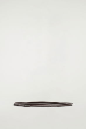 With its sophisticated look, this wide leather belt draws inspiration from vintage ‘70s accessories. Made from soft camel leather, it boasts a high waist enhanced with shiny metal detailing. Paired with a tone-on-tone loop, its large, silver-tone buckle on the front features a slightly worn effect with engraved details. Add a retro edge to your outfit by teaming this brown belt with raw gray jeans, a roll-neck sweater and sneakers.