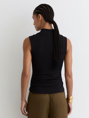 This black wool vest top is an essential sportswear garment that works well with your everyday looks. We’ve opted for a soft, comfortable wool with tone-on-tone ribbed cuffs. This sleeveless piece provides a refined look thanks to the rounded shape of its armholes and low neck. For a streetwear-inspired look, team this women's vest top with khaki cargo pants and a pair of sneakers.