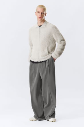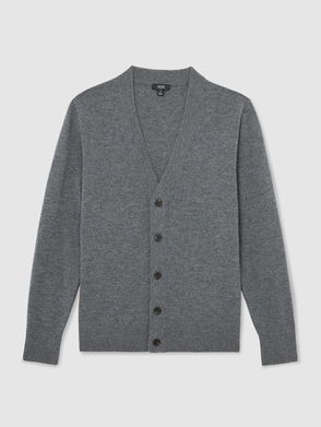 Enhanced by its subtle, vintage-style finishing touches, this grey wool cardigan is an absolute classic from our new Winter collection. Casual and understated, it’s made from chunky-knit fabric and features a high neck, drop shoulders and silver metal zip fastening on the front. The black leather elbow patches are an irresistible, signature feature added to this item. For an everyday outfit, wear this loose-fitting cardigan with a merino wool sweater, skinny jeans and boots.