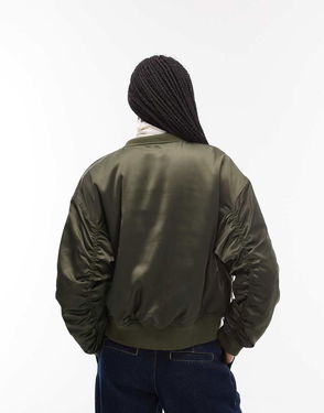 Perfect for giving those flowing, refined outfits a bold twist, this zipped khaki jacket is one of our new collection's key pieces. Styled like a bomber jacket, it's made from brightly colored fabric and has a quilted insert on the front. It has ribbed edging and is adjustable thanks to the zipper fastening. Opt for a bold look by teaming this cropped jacket with a printed silk dress, a black belt and cowboy-style boots.