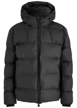 Packable design. Toggle hood. High collar. Zip fastening. Logo print to chest and back. Functional pockets. Regular fit.