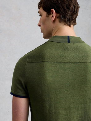 Polo collar. Partial button placket. Short sleeves. Logo embroidery to chest. Regular fit.
