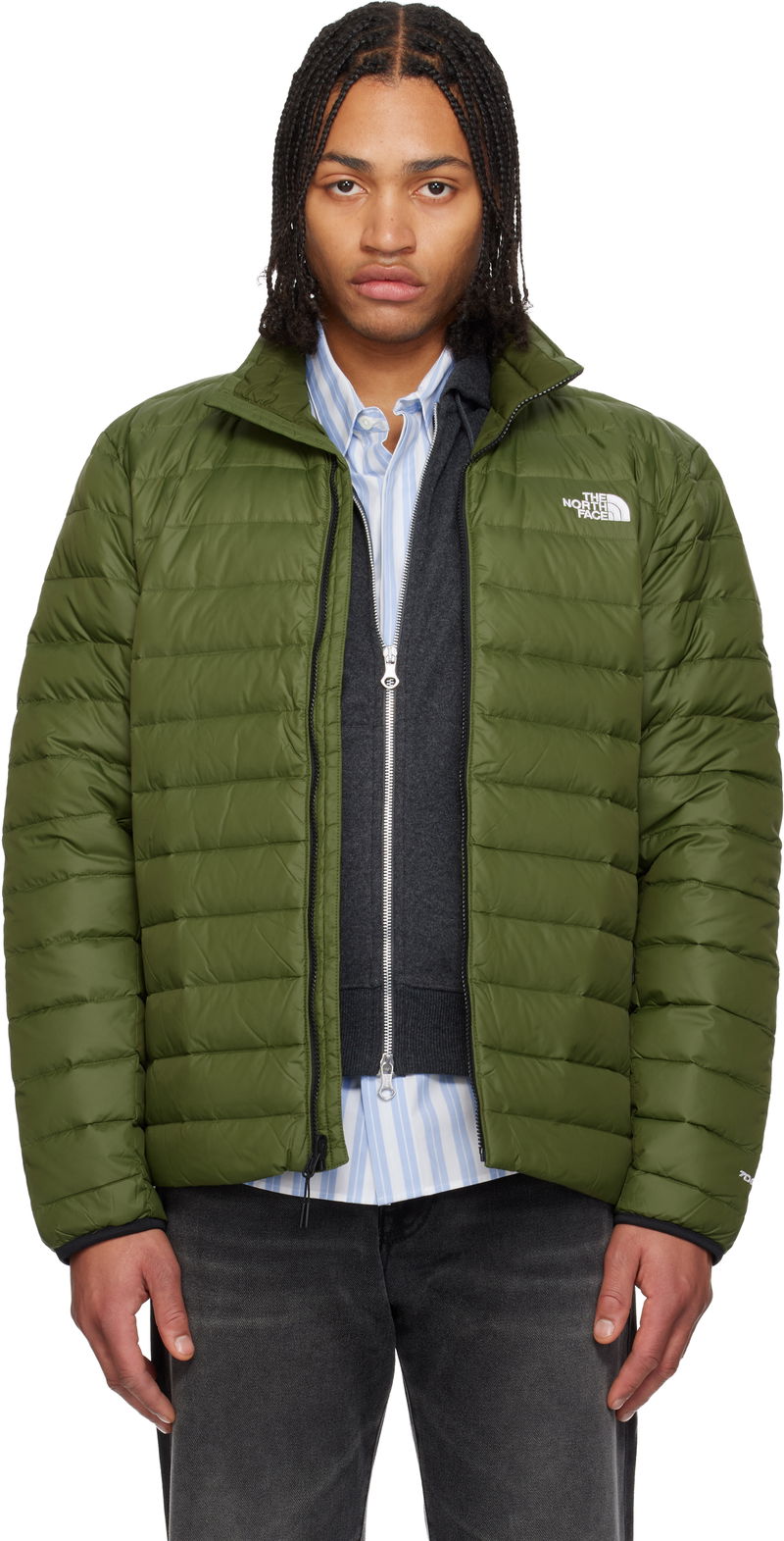 Made with at least 50% recycled down. Recycled down is reclaimed and reprocessed down from post-consumer goods, that requires no new animal input and reduces waste.