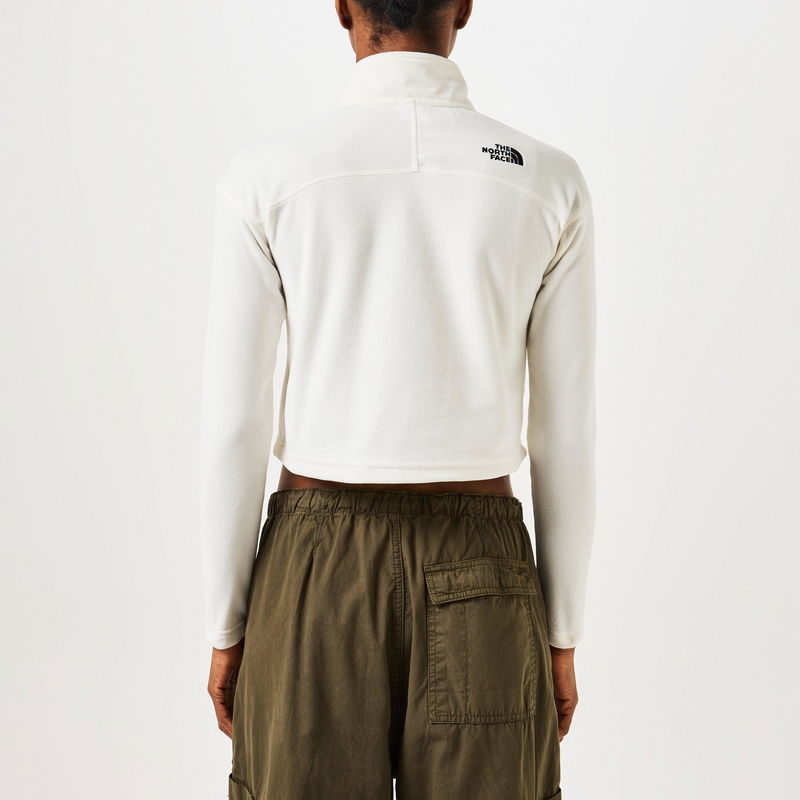 Contemporary athletic style meets everyday comfort in this North Face Glacier Quarter-Zip Crop Fleece Top. A modern take on the classic fleece silhouette features a cropped length that pairs perfectly with high-waisted bottoms.