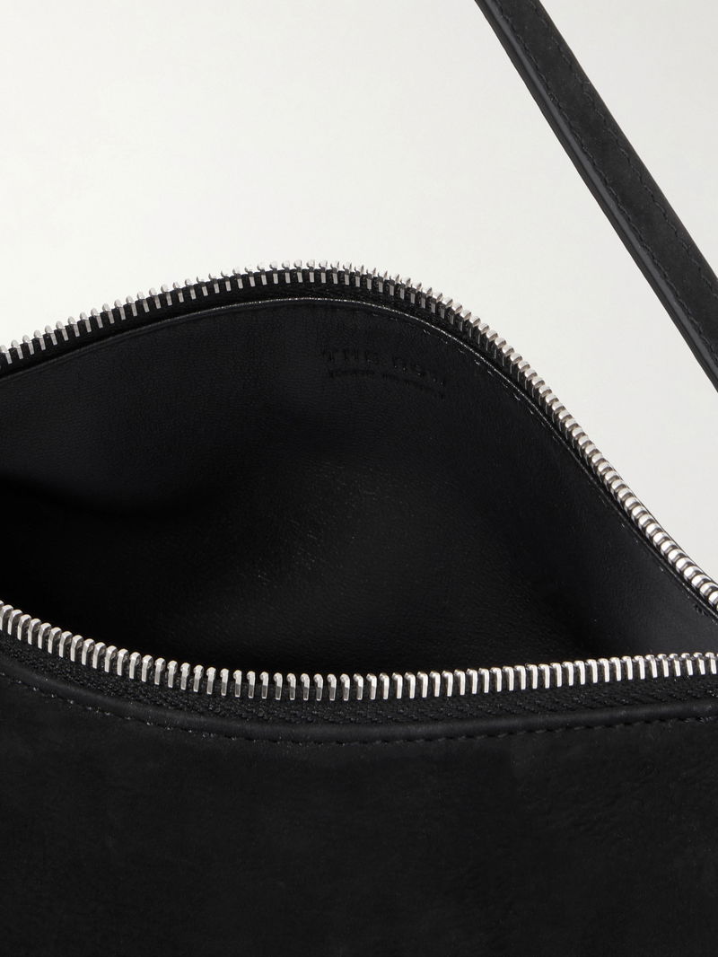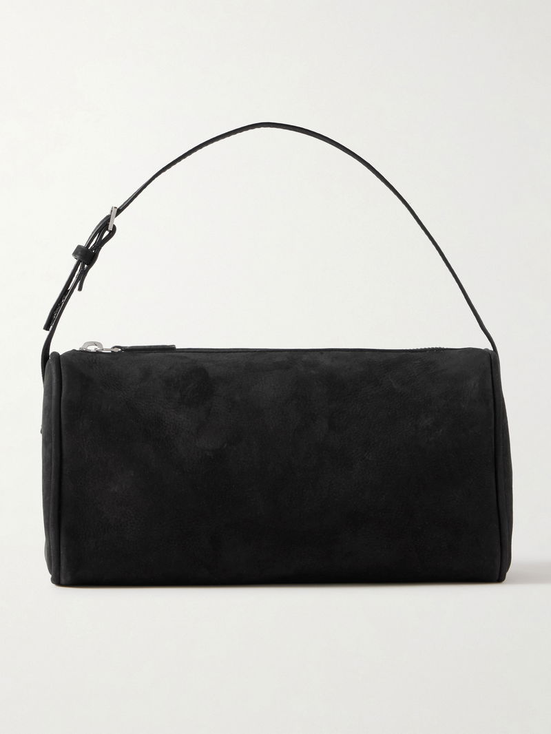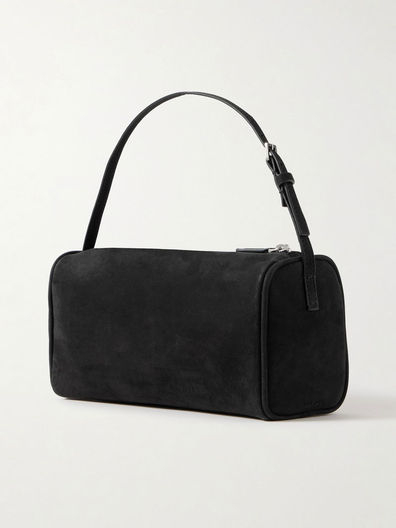 As its name suggests. The Row's tote is modeled on beloved '90s' styles. This version has been made in Italy from black nubuck and has a compact, rounded shape. It offers enough space for your phone, keys and cards.