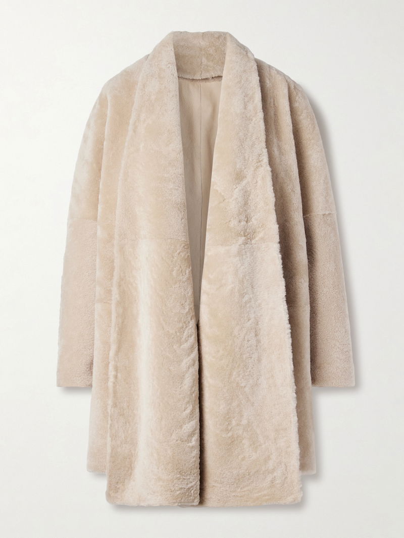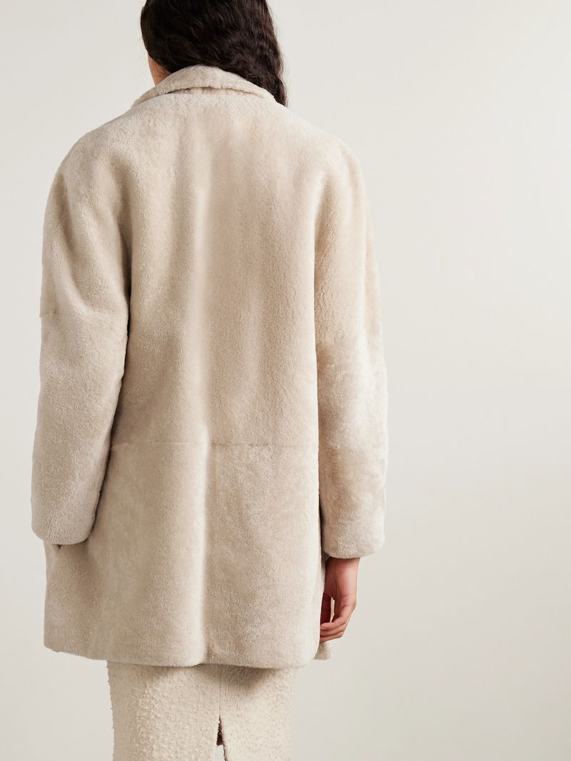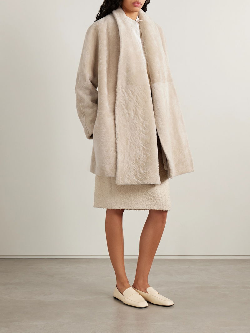 The Row creates chic, quality outerwear that will outlast the seasons and trends, ensure it gets plenty of wear. This 'Alarise' coat has been made in Italy from cozy, insulating shearling for a slightly loose fit and has shawl lapels. The full silk lining ensures smooth, easy layering.