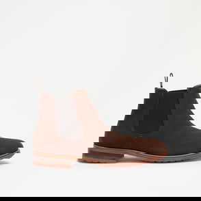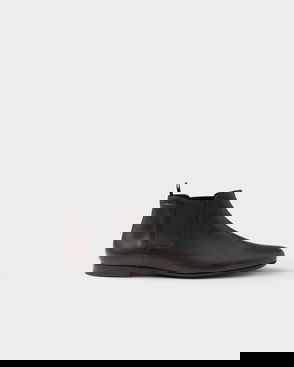 The Row’s rust-brown leather Chelsea boots feature wide elasticated gussets that splice the silhouette, bringing a contemporary slant to the sartorial staple.