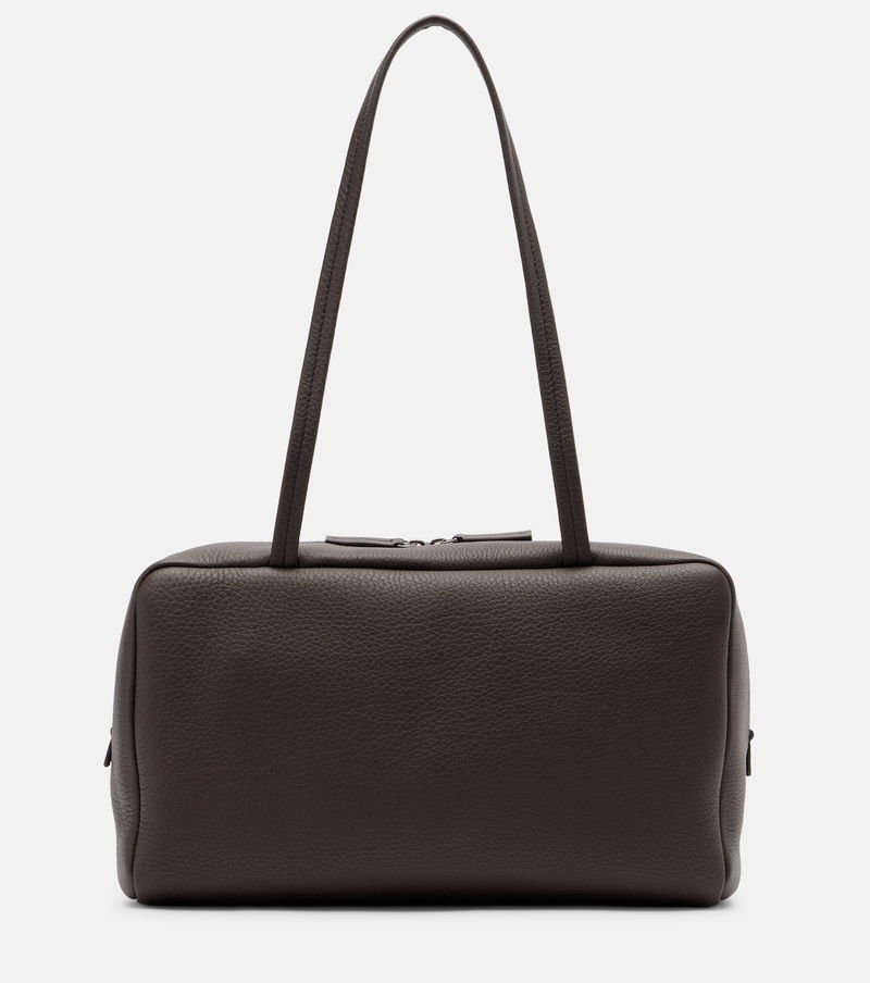 The Astra bag from The Row showcases a grained leather construction and signature streamlined silhouette. The design features a spacious interior and lengthy flat handles that double as shoulder straps.
