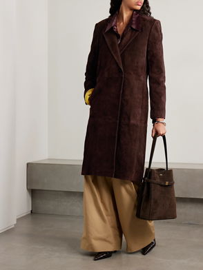 The Row's 'Babilonia' coat is made from panels of velvety-soft suede in a slightly loose fit. It's framed with a notched collar and fastens with horn buttons.