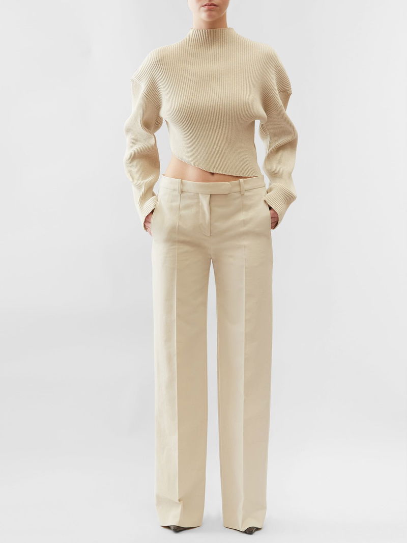 The Row's ivory Banew trousers are tailored in Italy from soft cotton and virgin wool twill and cut to a cleanly pressed straight leg.