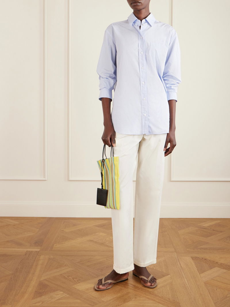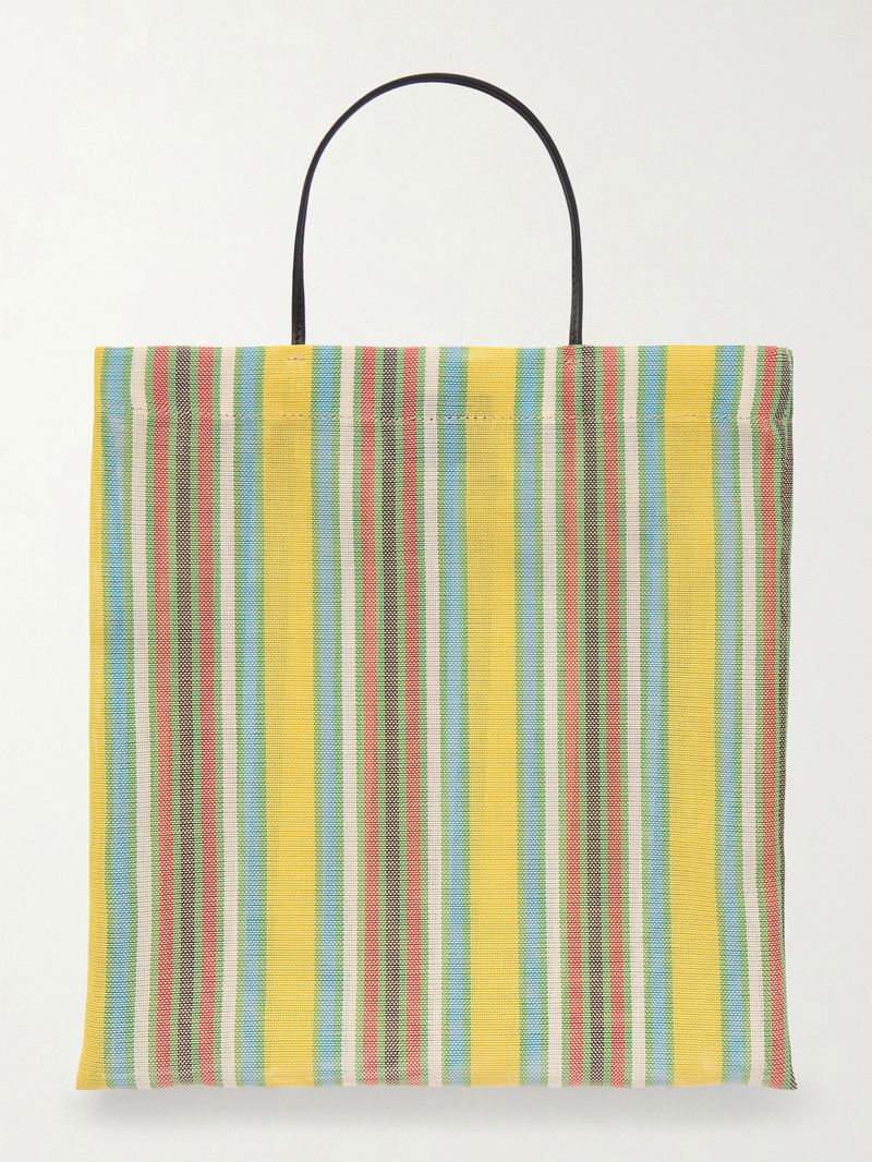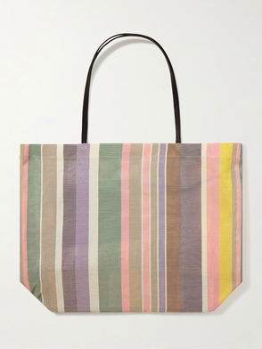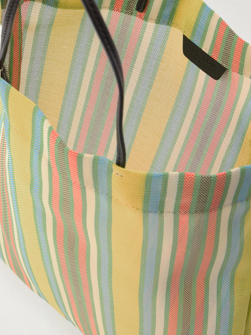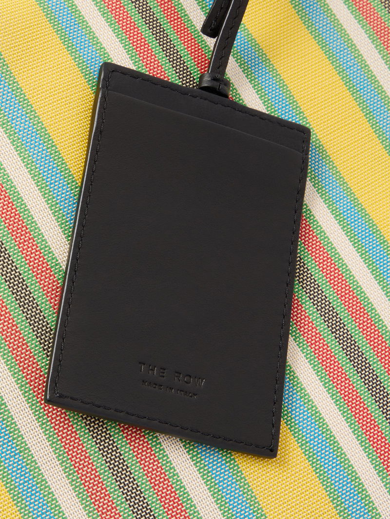 The Row's 'Bar' tote is made from canvas patterned with colorful stripes and finished with a sleek top handle. Lightweight and versatile, it features a leather cardholder - ideal for keeping credit or travel cards close at hand.