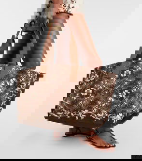 Open top, flat leather twin handles, one main compartment, mesh striped design