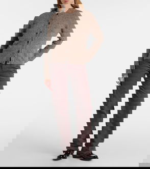The Row's 'Carmine' pants fall to ruffled cuffs that pool beautifully at the floor. They're made from flexible beige ribbed silk and cotton-blend in a straight-leg silhouette and have a high, elasticated waist for a comfortable fit.