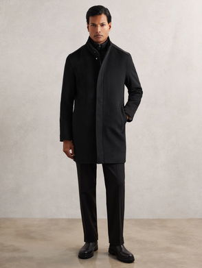Padded nylon taffeta coat. · Lightweight and water-repellent· Spread collar· Concealed button closure· Zip pockets· Central vent at back hem· Zip pockets at interior· Fully lined· Horn hardware.