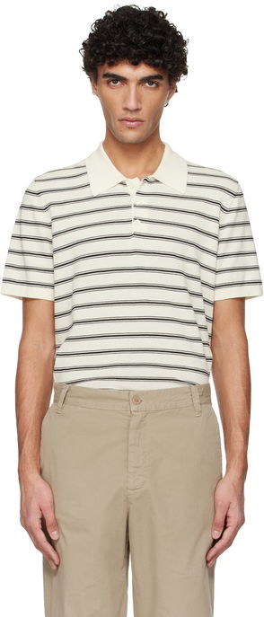Extrafine wool jersey polo.· Rib-knit spread collar, hem, and cuffs· Three-button placket· Dropped shoulders· Central garter-stitch stripe at back.