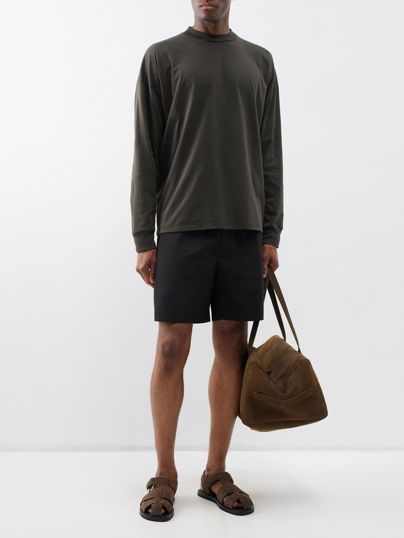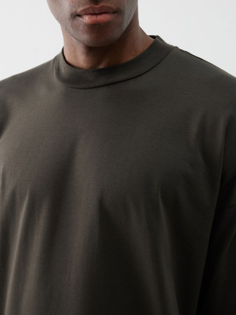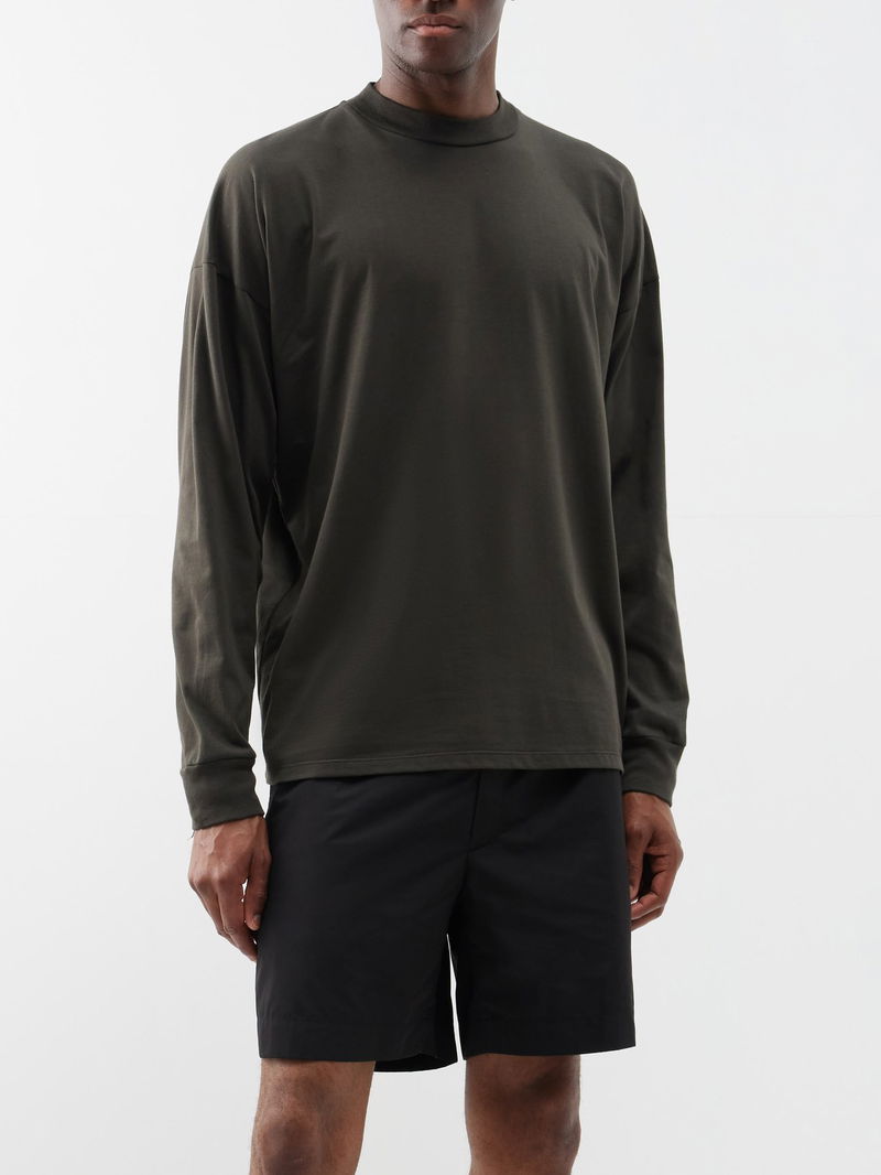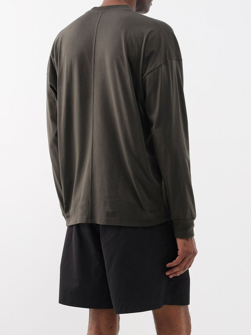 The Row's khaki-green long-sleeved Drago T-shirt is cut from soft cotton jersey accented with the label's signature raised seam running down the back.