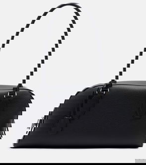 Polished calfskin shoulder bag in black.· Burnished edges throughout· Adjustable and detachable crossbody strap· Flip-clasp foldover flap· Patch pockets at interior.