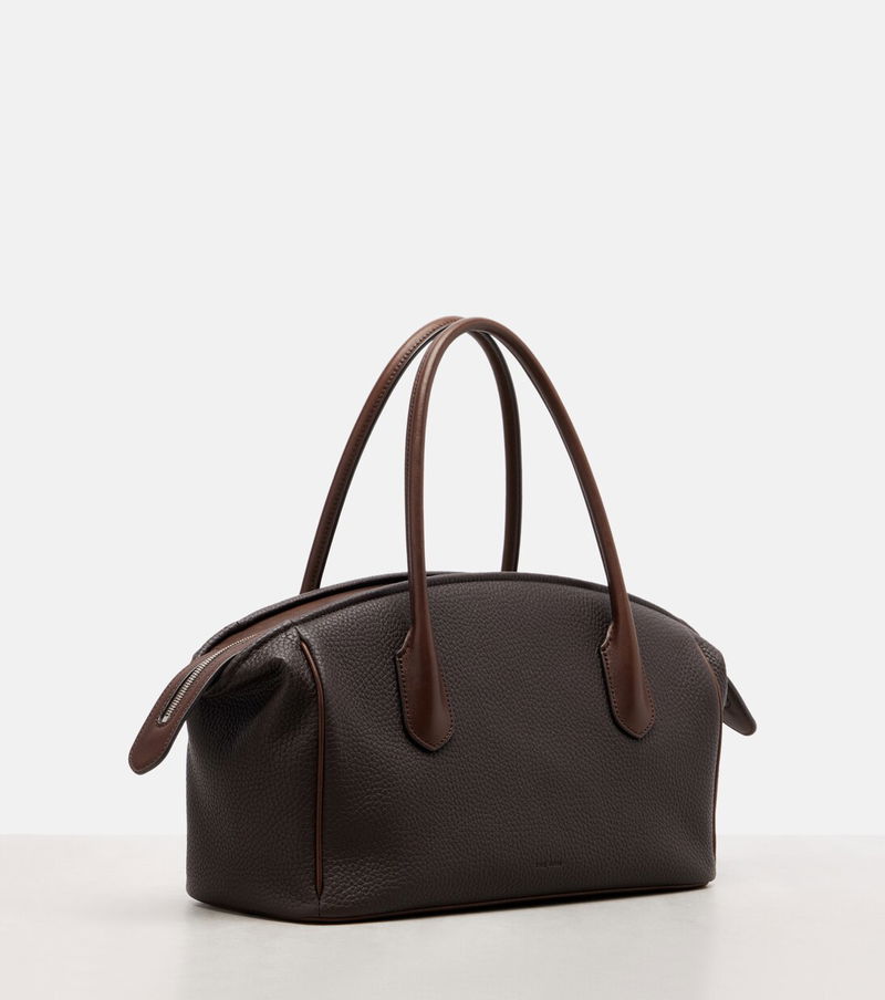 A deep affection for refined and timeless fashion influences The Row's dedication to craftsmanship and quality. The Ewa tote bag is crafted in Italy from brown leather and features a geometrical silhouette with top handles.