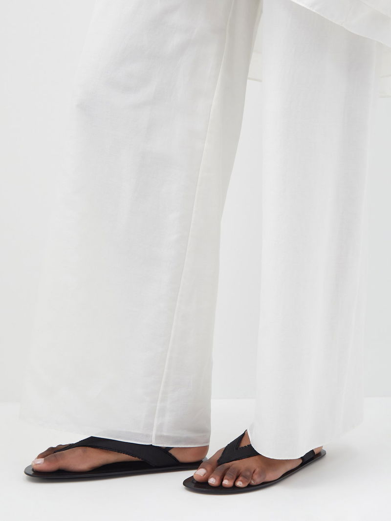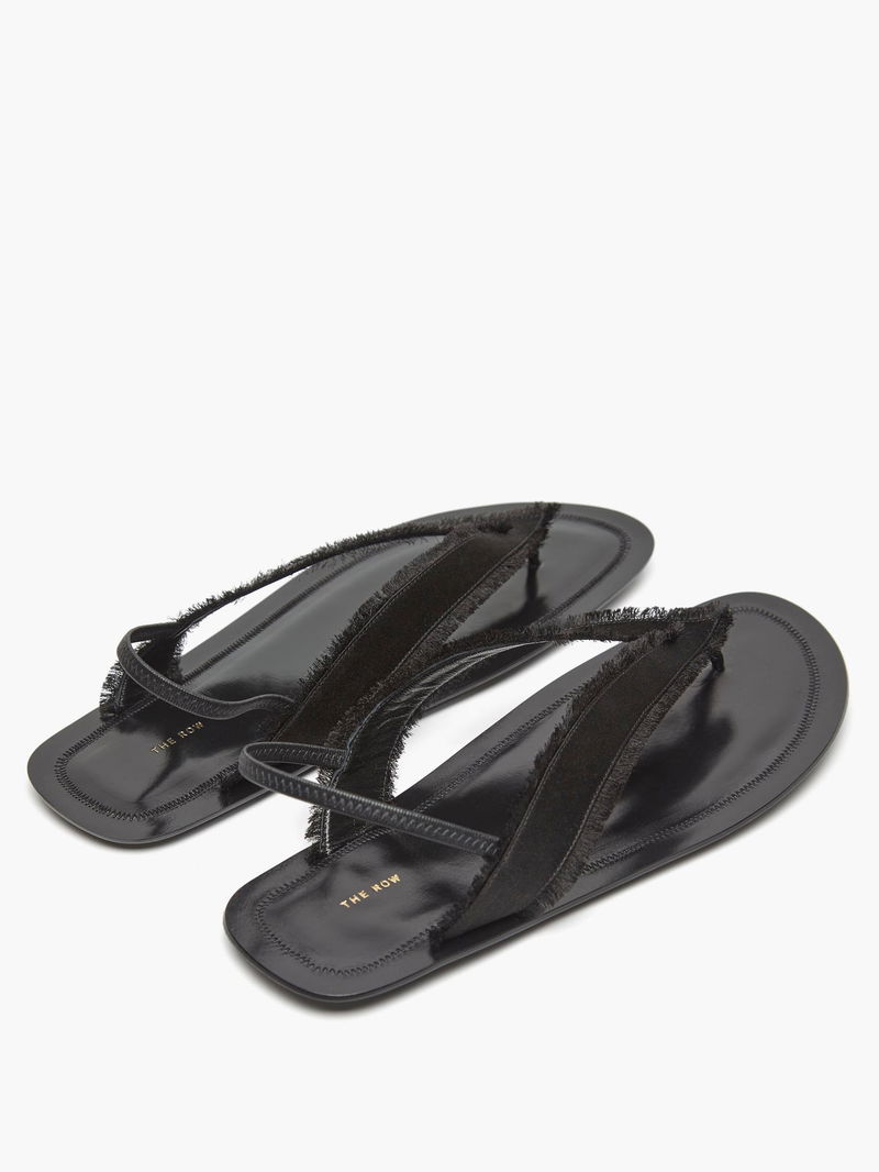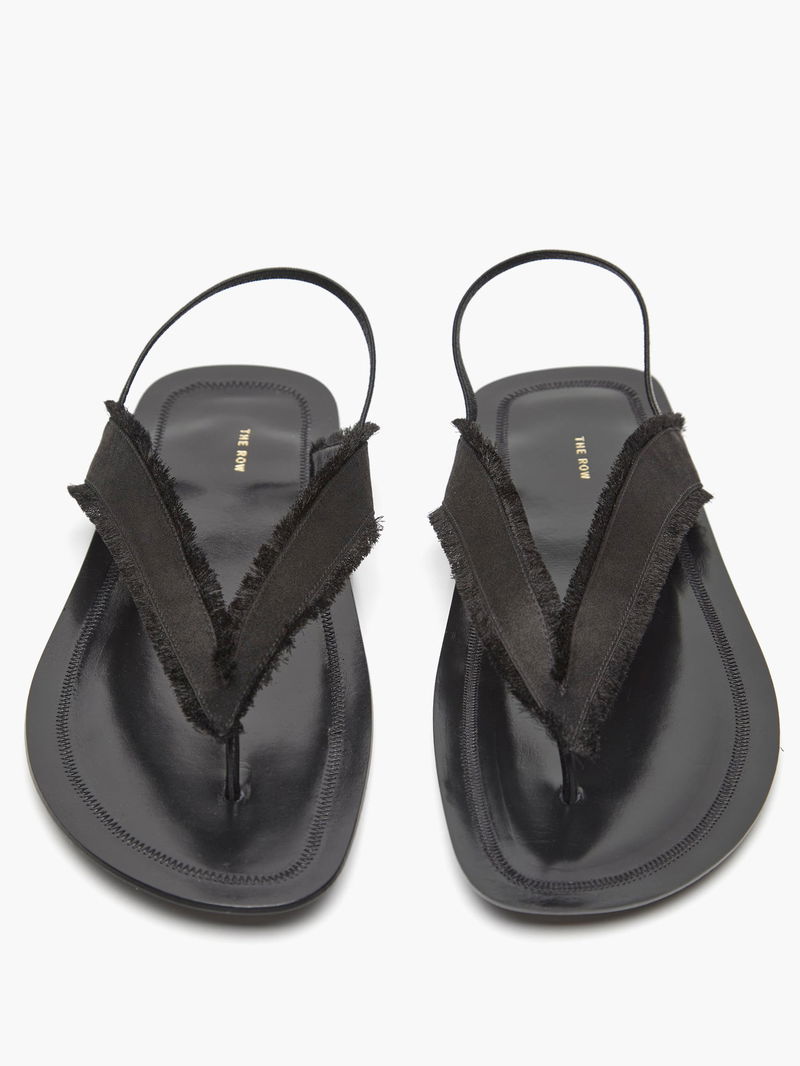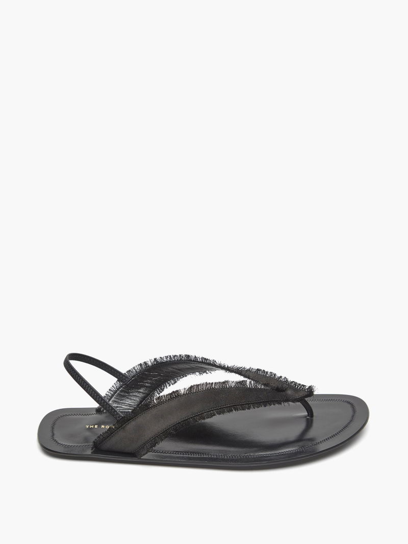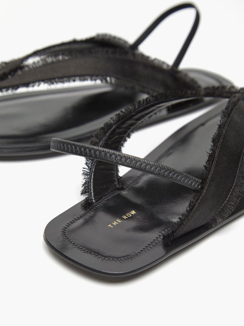 The Row’s textural elegance translates to these black Fray slingback sandals, made with fringed satin straps and a leather insole complete with the label's hot-stamped logo.