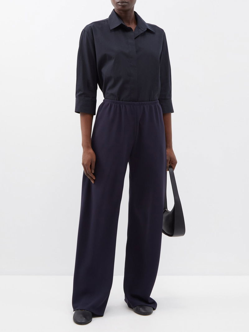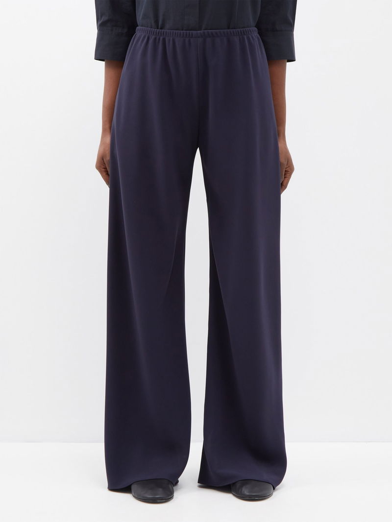 The Row's understated refinement is captured in these navy Gala trousers, crafted from soft double cady and defined by an elasticated waistband and wide legs.