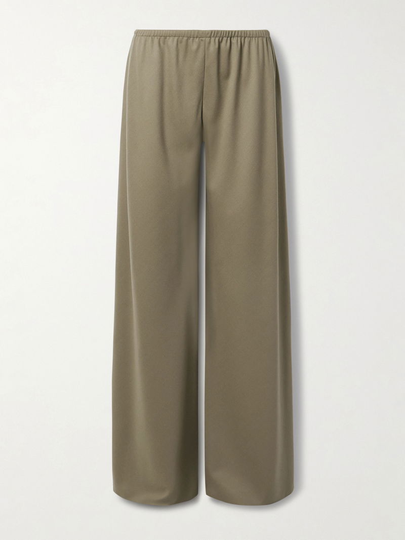 When selecting fabrics, everything comes down to the way it drapes and feels for Mary-Kate and Ashley Olsen. The Row's 'Gala' pants are cut from fluid wool in a relaxed, wide-leg shape and topped with a comfortable elasticated waistband. Wear them with a loose blouse or T-shirt.