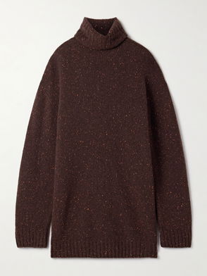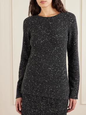 The Row's 'Harini' sweater is knitted from dark-gray cashmere that's brushed to give it an exceptionally soft handle. It has a shallow V-neckline and dropped shoulders that enhance the relaxed fit. Tuck the longer hem into everything from jeans to tailoring.