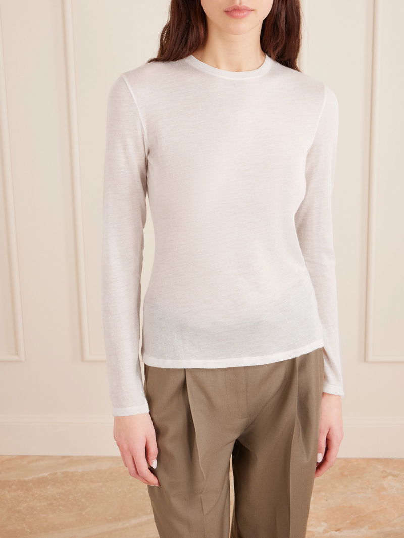The Row's 'Iverness' top works equally well solo or layered under one of the label's jackets or cardigans. It's been made in Italy from cashmere that's soft, lightweight and semi-sheer, so underpin it accordingly.