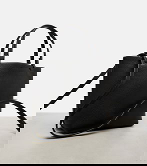 Made in Italy from polished saddlery leather, The Row's supple black Jasper tote has a generous open-top trapeze silhouette with stirrup-like tacked top handle straps.