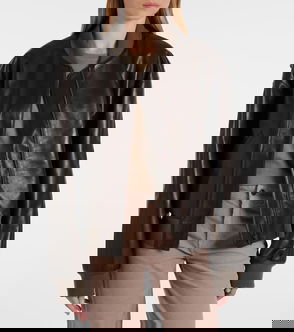Oversized grained calfskin jacket. · Round neck· Zip closure· Welt pockets· Rib-knit hem· Raglan sleeves· Zip vent at cuffs· Welt pockets at interior· Full jersey lining.