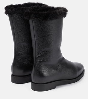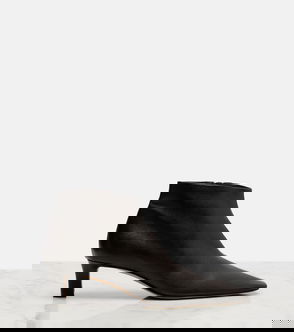 The Row's ankle boots are made from smooth leather that's coated to give it the rubbery look and feel of classic rain styles. They have pull tabs for easy on and off and a slight heel for added lift.