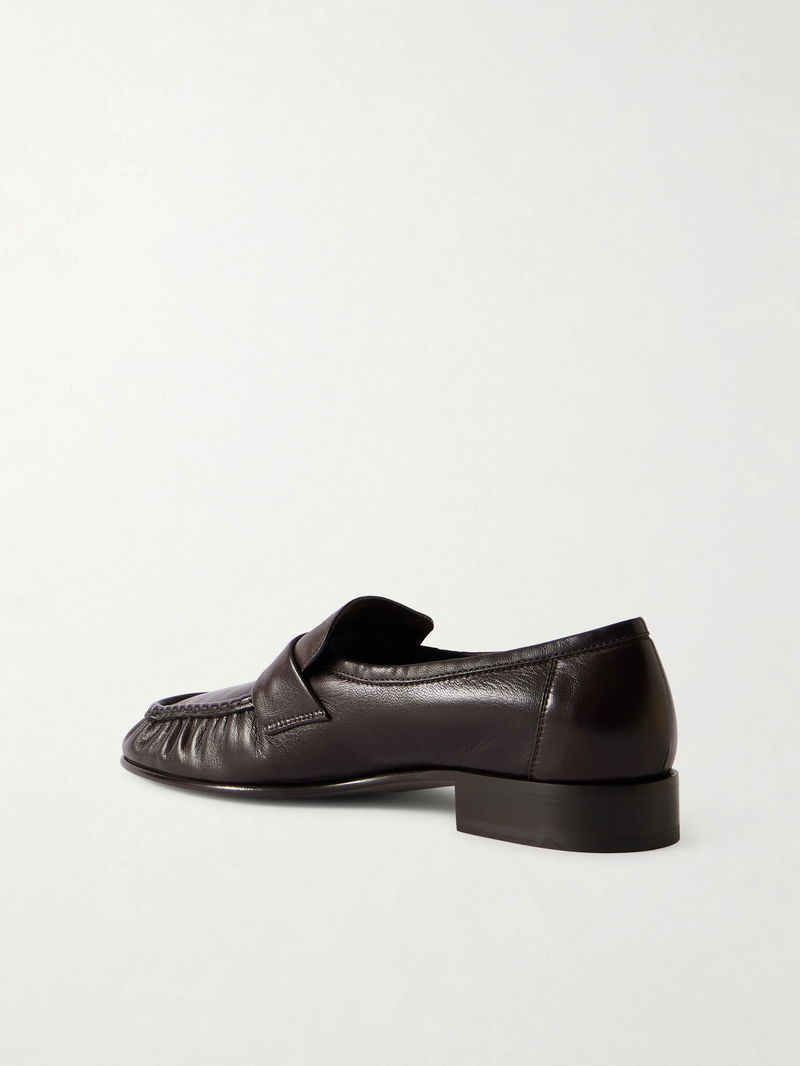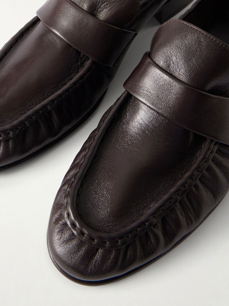 These loafers reflect The Row's dedication to impeccable craftsmanship. Made in Italy from soft leather, they're gently pleated around the aprons and have hand-painted soles. Pair them with everything from tailored trousers to relaxed denim.